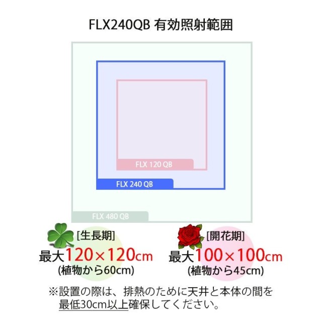 ・有効照射範囲は生長期で最大120×120cm (植物から60cm)