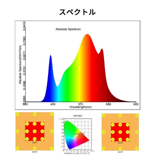 フルスペクトル高効率白色光とディープレッド660nmLEDを搭載したカスタム設計の『クアンタムボード』を使用しています。