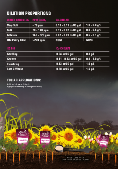 グリーンハウスフィーディングはソイル/ココ/ハイドロポニック/エアロポニックと培地を選ばす使用でき、素晴らしい結果を約束します。 Calcium [Ca]..........9%